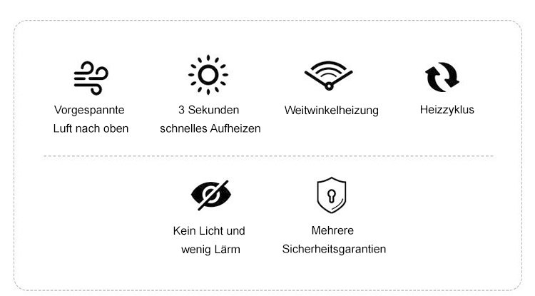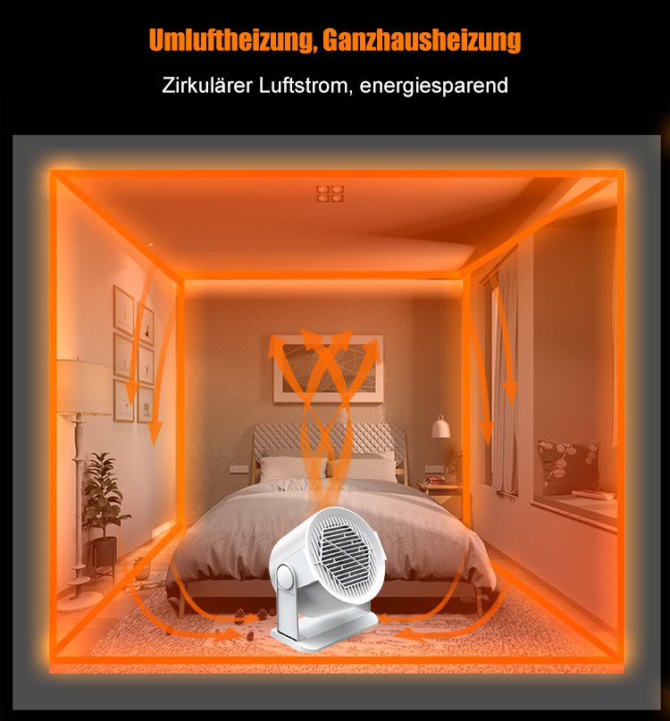 Keine komplizierte Installation erforderlich, einfach einstecken und nutzen. Erhöht die Temperatur eines 100 m² Raums in 3 Minuten. Weniger als 0.1 kWh Verbrauch für den ganzen Tag.