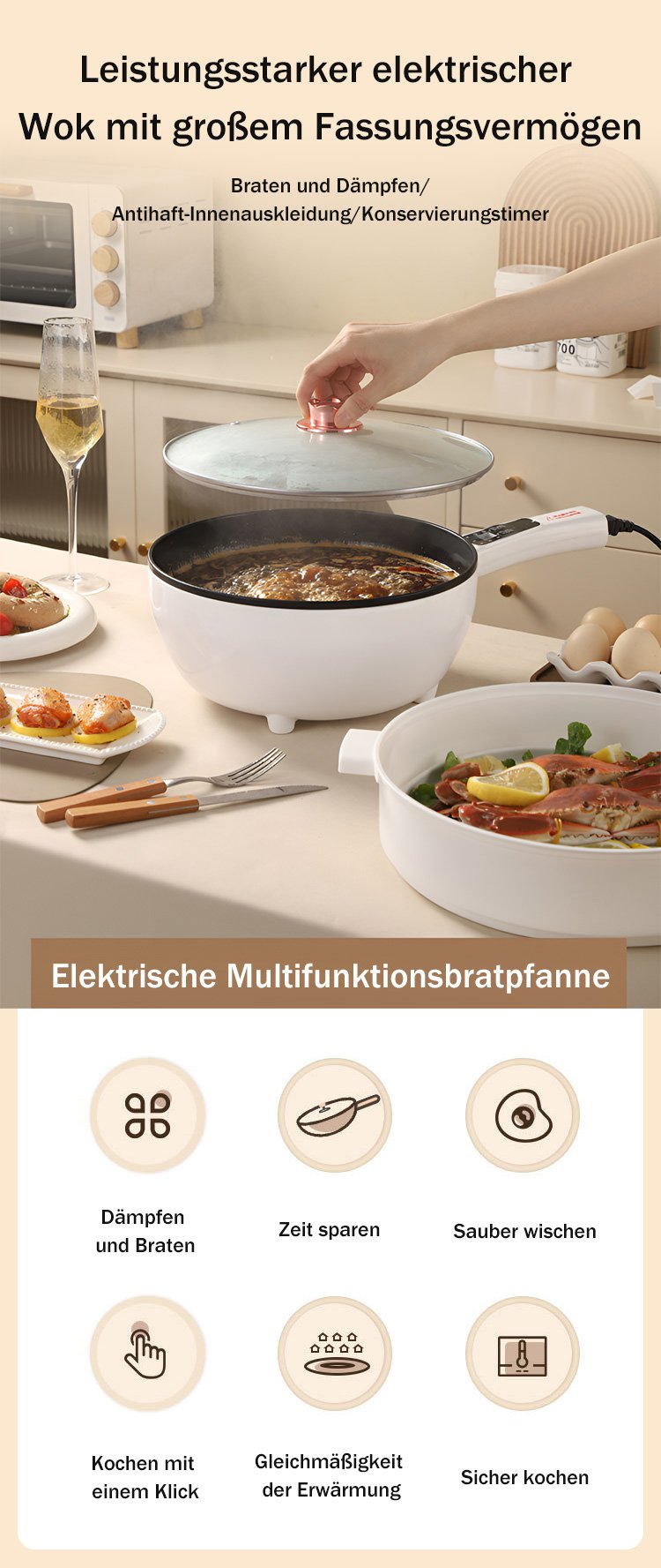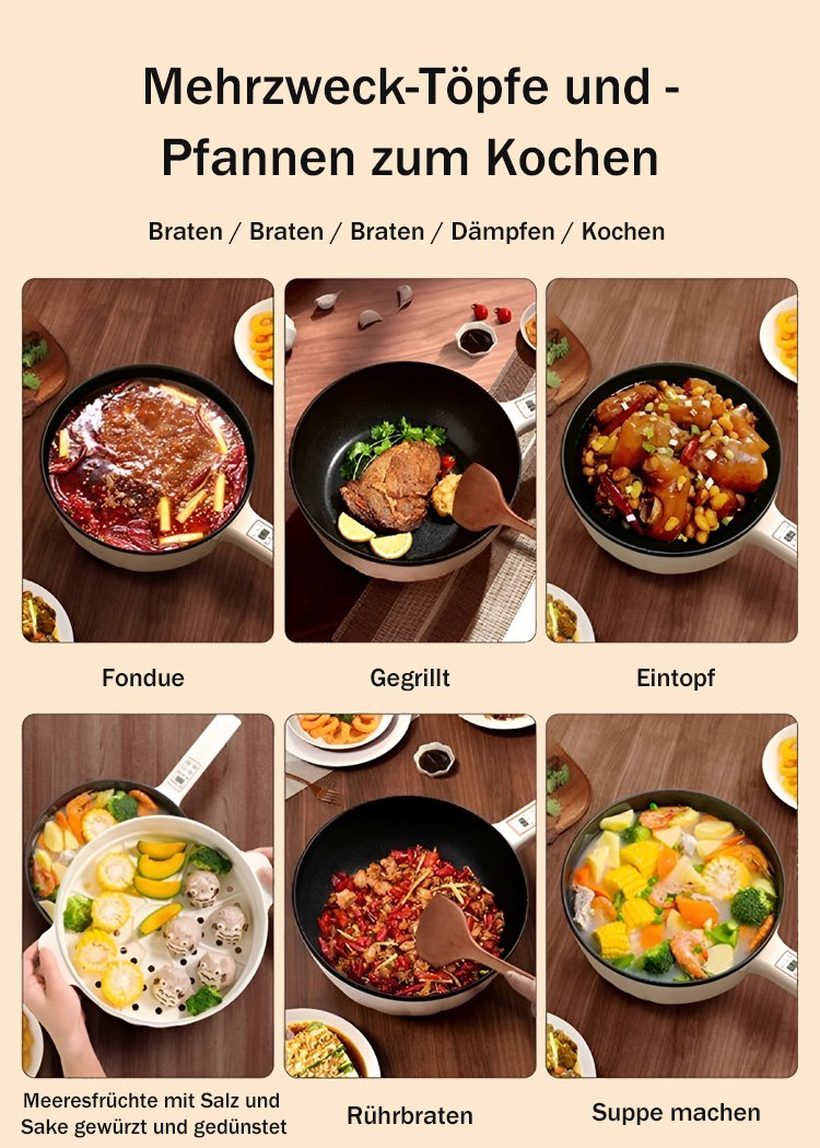 Mit einer starken Leistung von 1350W und schneller Erhitzung in 3 Sekunden stehen sechs Modi zur Auswahl.